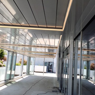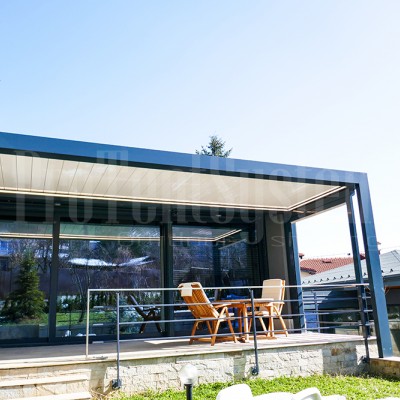 Le modèle de pergola BioClima C2 est monté sur une façade ou une autre structure, et dans la partie avant, il est soutenu par 2 colonnes en aluminium séparées. Il convient aux hôtels, restaurants, villas, zones résidentielles ou commerciales.