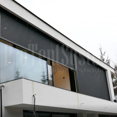 Elément extérieur décoratif et moderne du bâtiment, les stores bannes à cassette en aluminium et un système de fermeture éclair assurent jusqu'à 98% d'étanchéité et garantissent une protection efficace contre les vents violents. Le tissu spécial micro perforé avec protection UV (Screen) assure la transparence et aide à atteindre un équilibre parfait entre le confort visuel et thermique, filtrant la lumière du soleil et la chaleur.