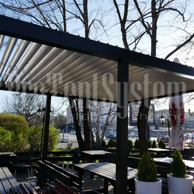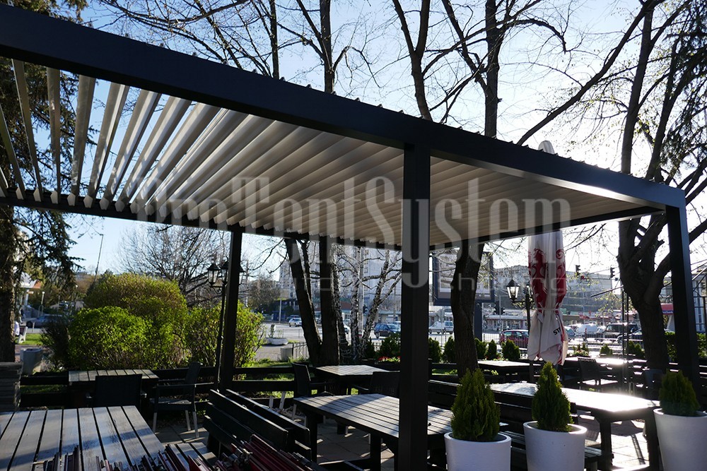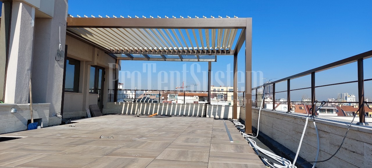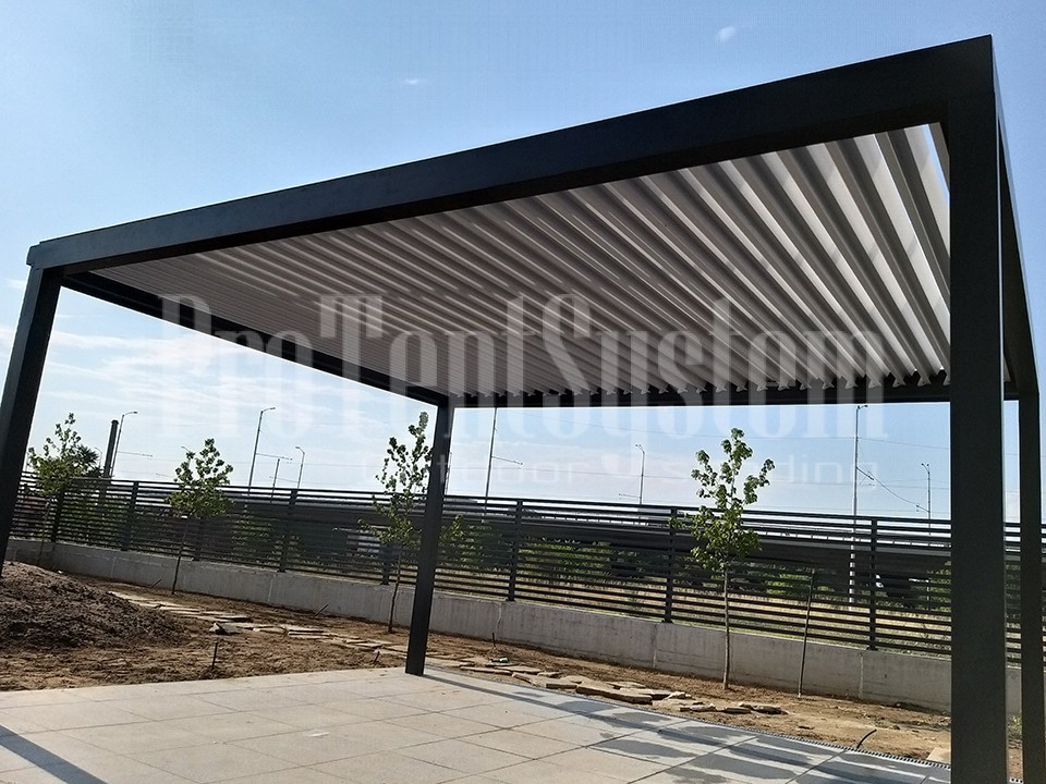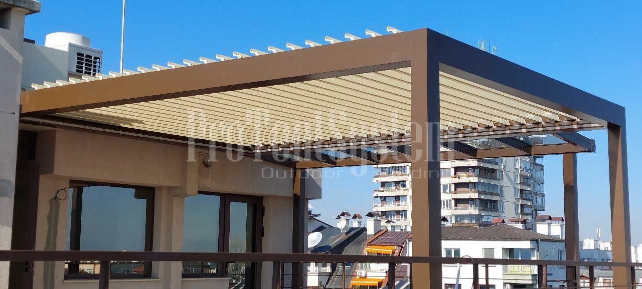 Пергола BioBalance Electric e автоматична покривна система без наклон с функция за завъртане на ламелите до 90° за правилно засенчване и вентилация.