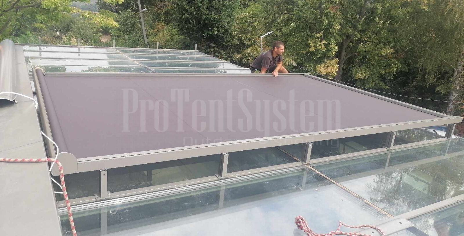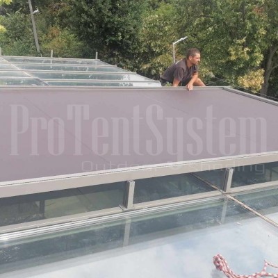 The Veranda awnings are specially designed for glazed roofs, so that temperatures in the premises remain comfortable in the summer months, too. The built-in springs guarantee perfect fabric tensioning and provide effective protection in rainy weather. The Veranda awnings are an excellent supplement to the Glass roof Winter garden but they can be used also for existing glass roofs and shelters, which are open or partially glazed.