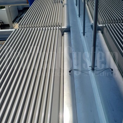 Le modèle de pergola BioClima C2 est monté sur une façade ou une autre structure, et dans la partie avant, il est soutenu par 2 colonnes en aluminium séparées. Il convient aux hôtels, restaurants, villas, zones résidentielles ou commerciales.