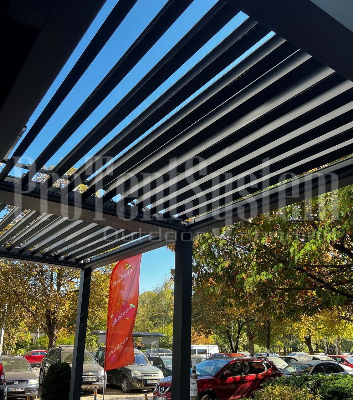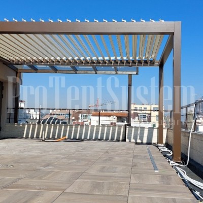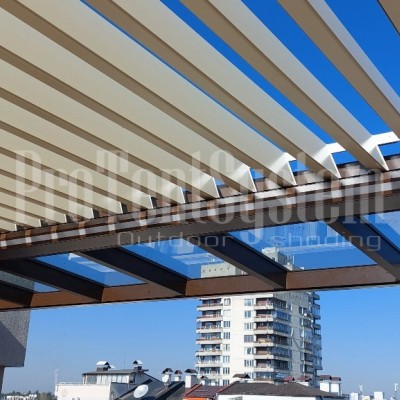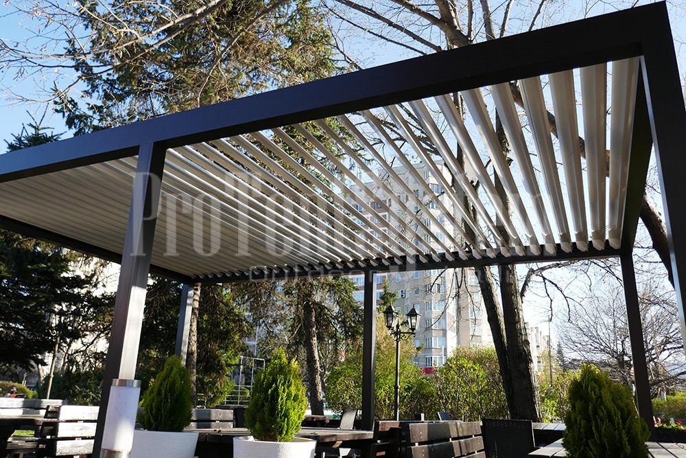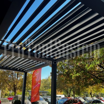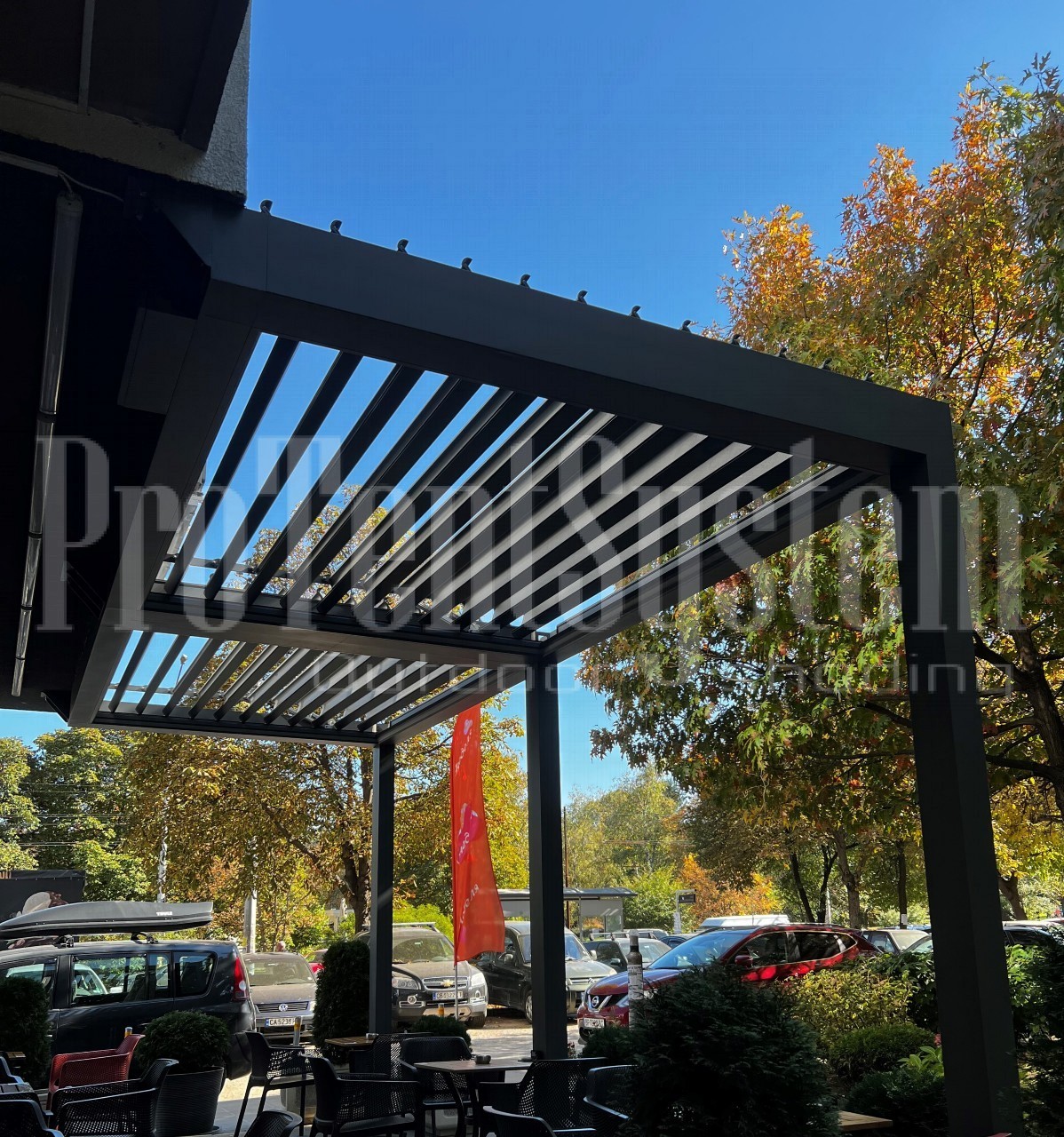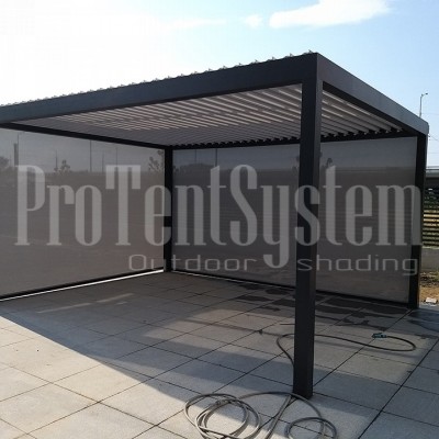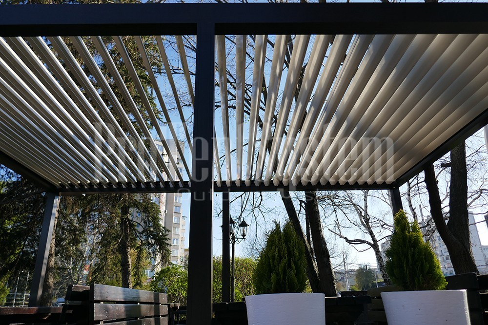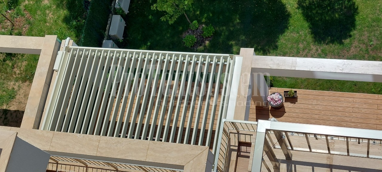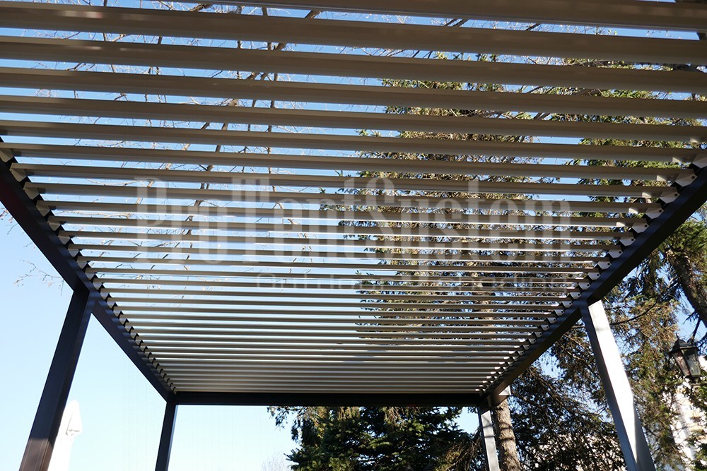 Пергола BioBalance Electric e автоматична покривна система без наклон с функция за завъртане на ламелите до 90° за правилно засенчване и вентилация.