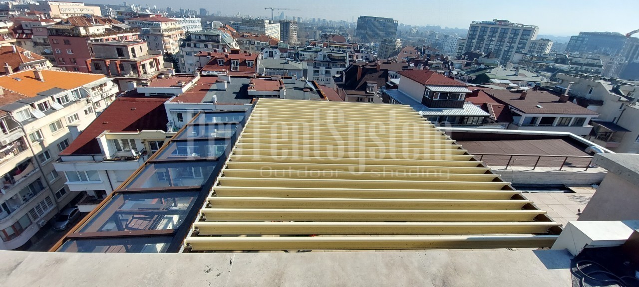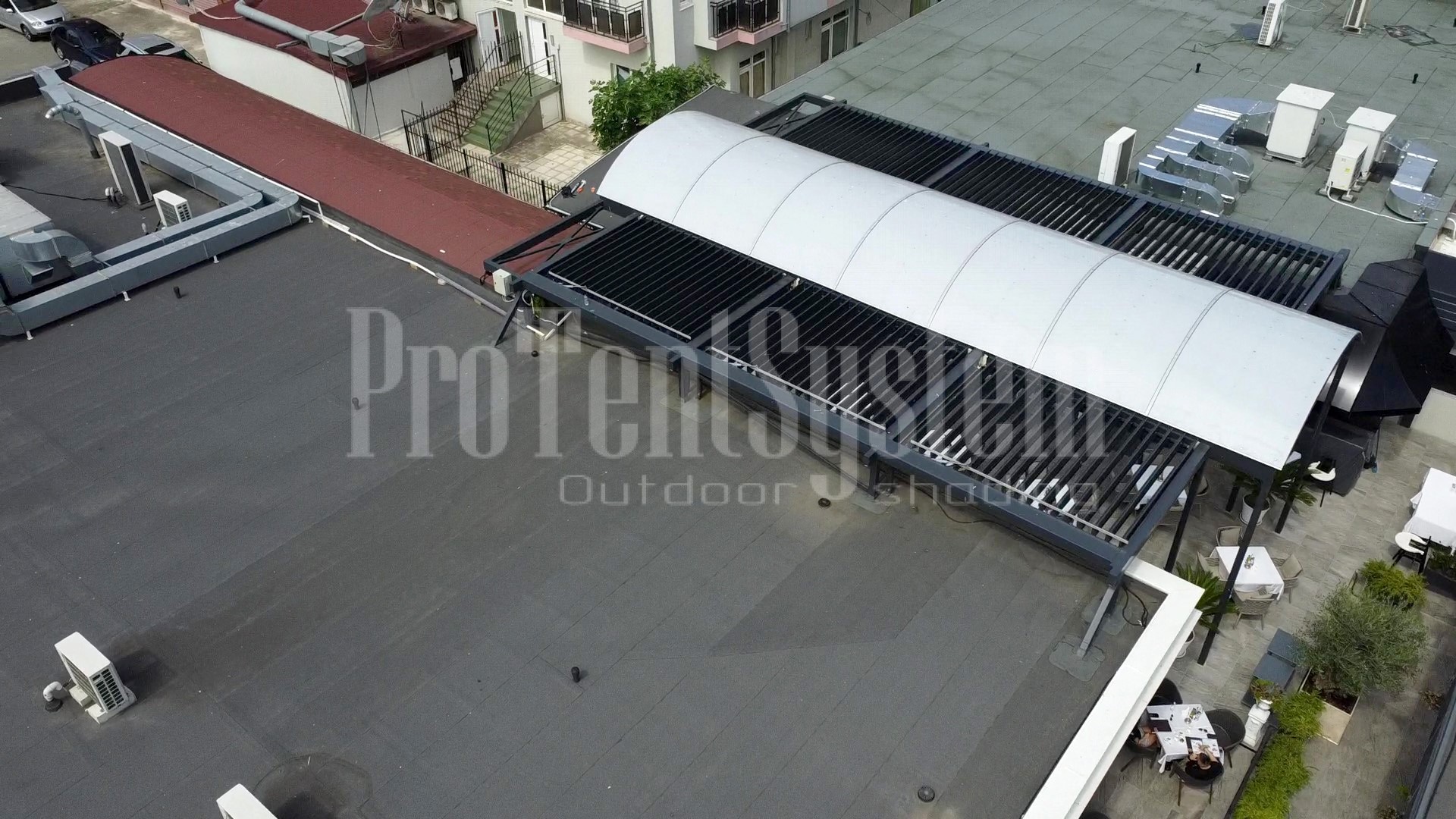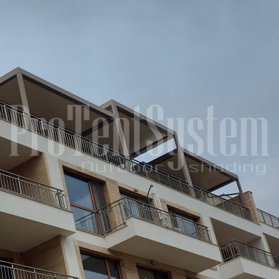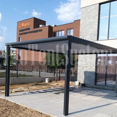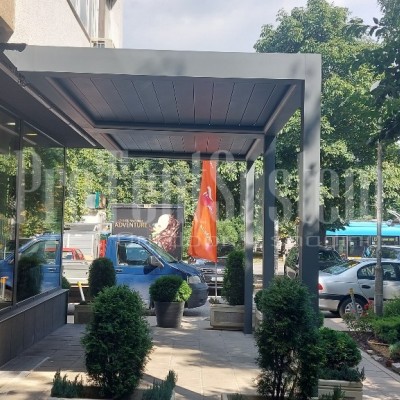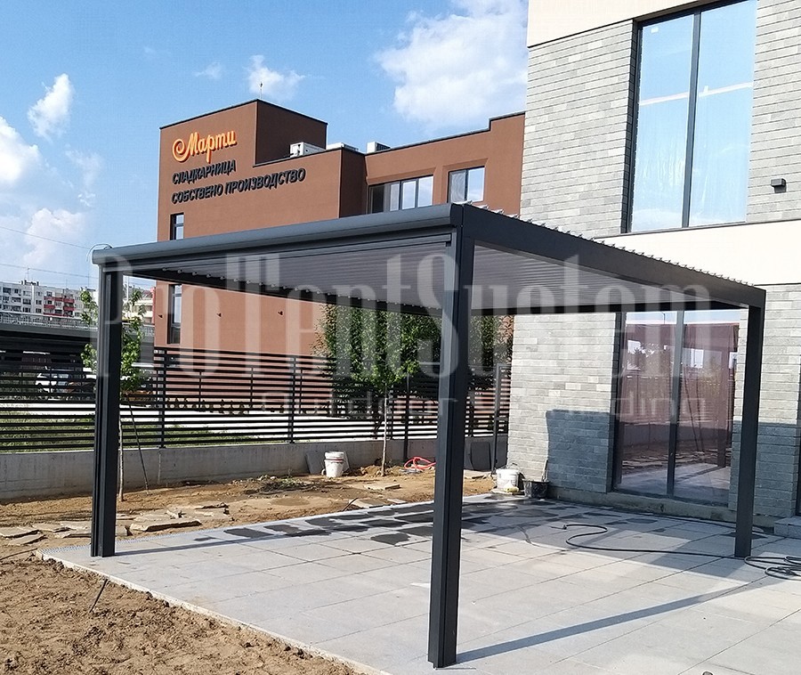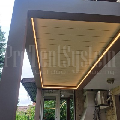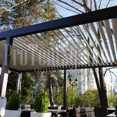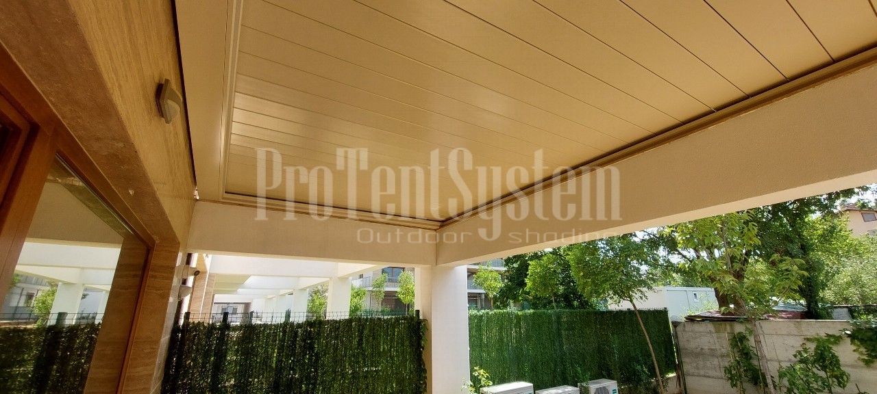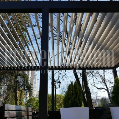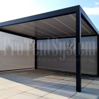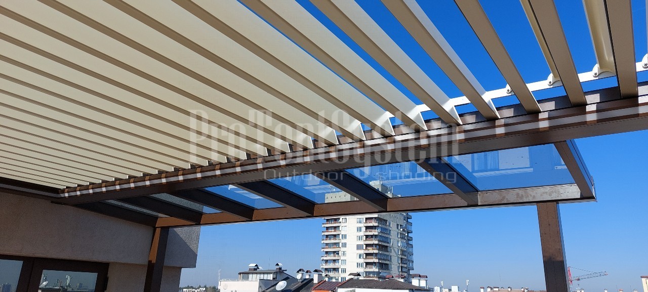 Пергола BioBalance Electric e автоматична покривна система без наклон с функция за завъртане на ламелите до 90° за правилно засенчване и вентилация.